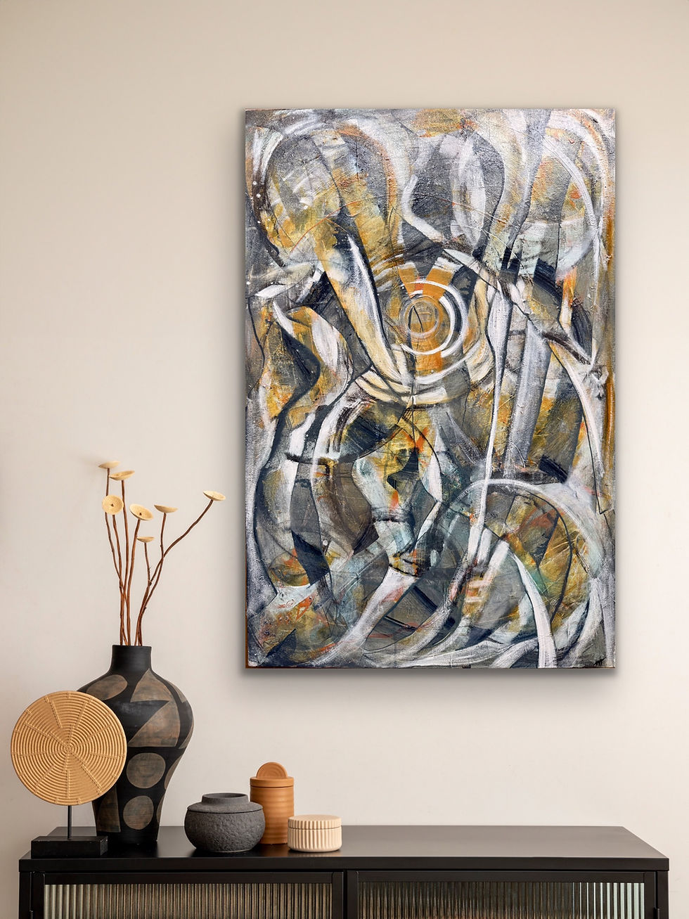 She became smooth again. I was able to put my hands on the canvas and await the feeling to move. There is was. Different flow. A very different technique....